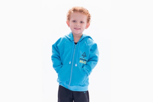 Blusa aberta em Double com zíper e capuz.